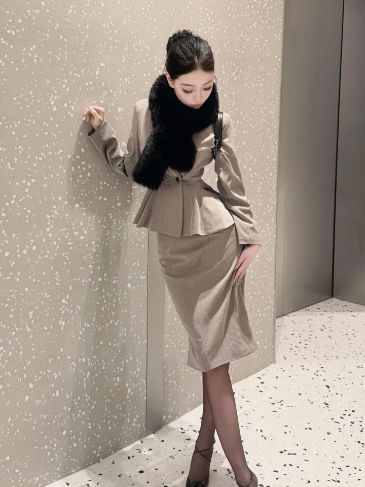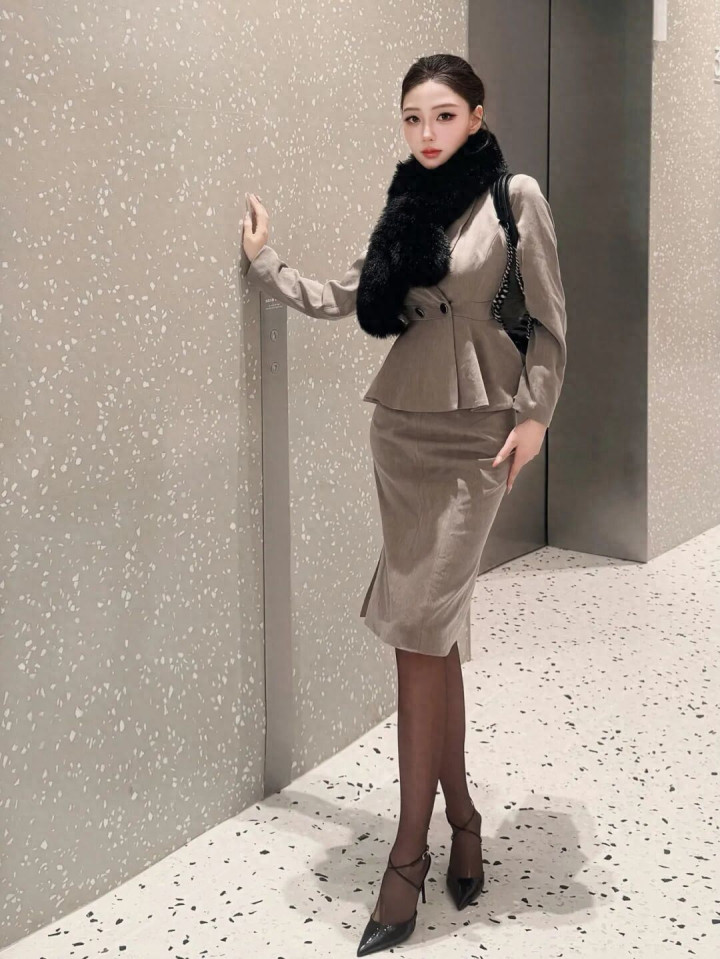 > 这个收腰套装太显比例了, 优雅大方又贵气!